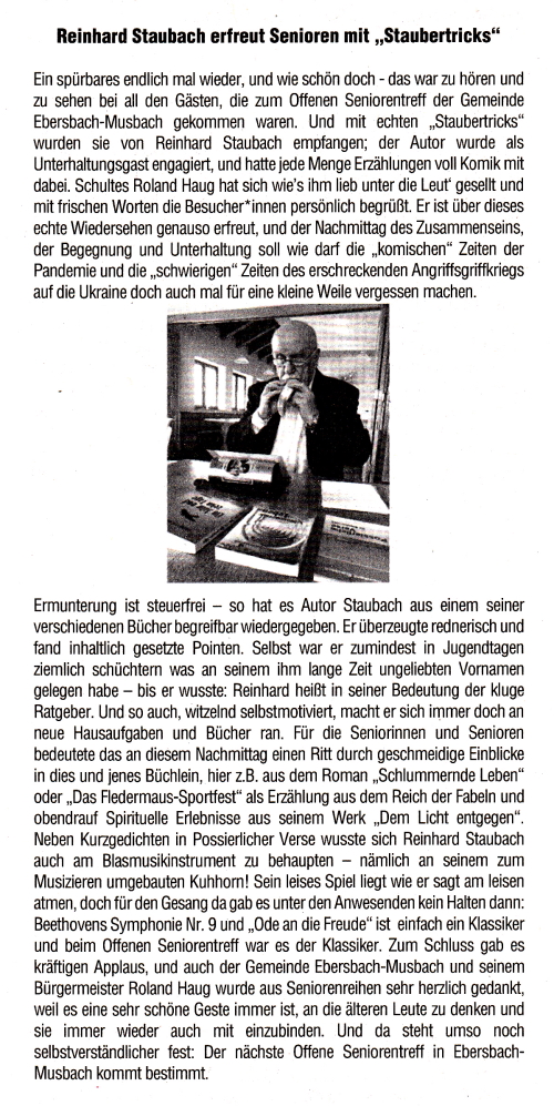 in Musbach wohnende Schriftsteller Reinhard Staubach